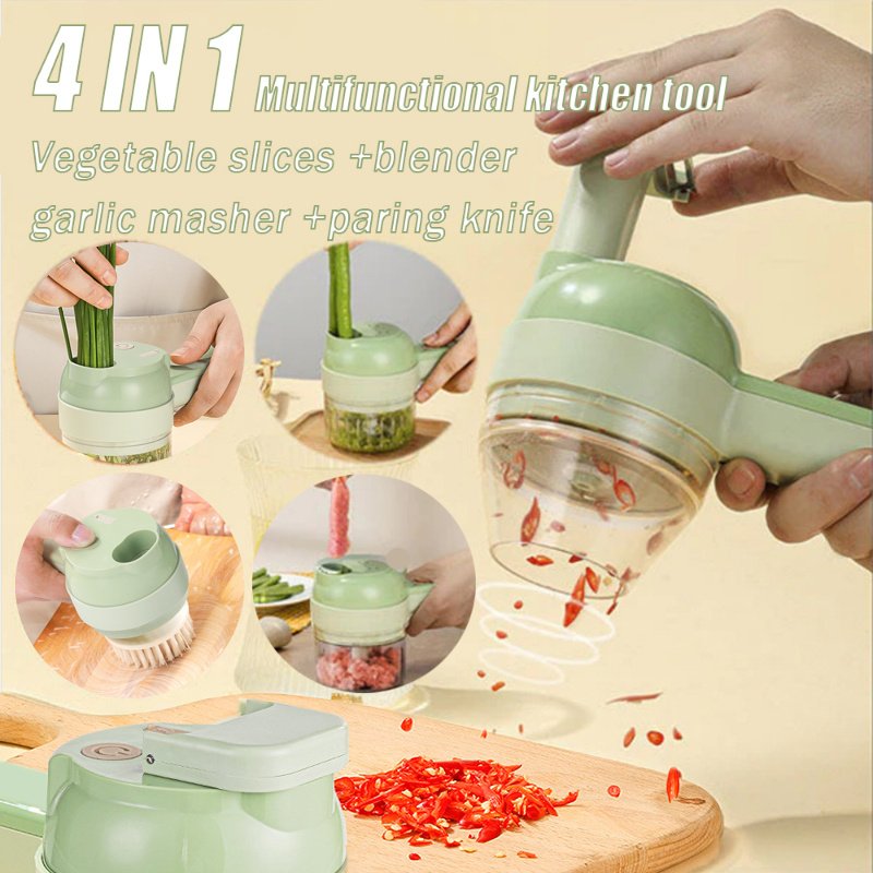 4In1 Multifunctional Electric Vegetable Cutter Slicer Garlic Mud Masher Garlic Chopper Cutting Pressing Mixer Food Slice